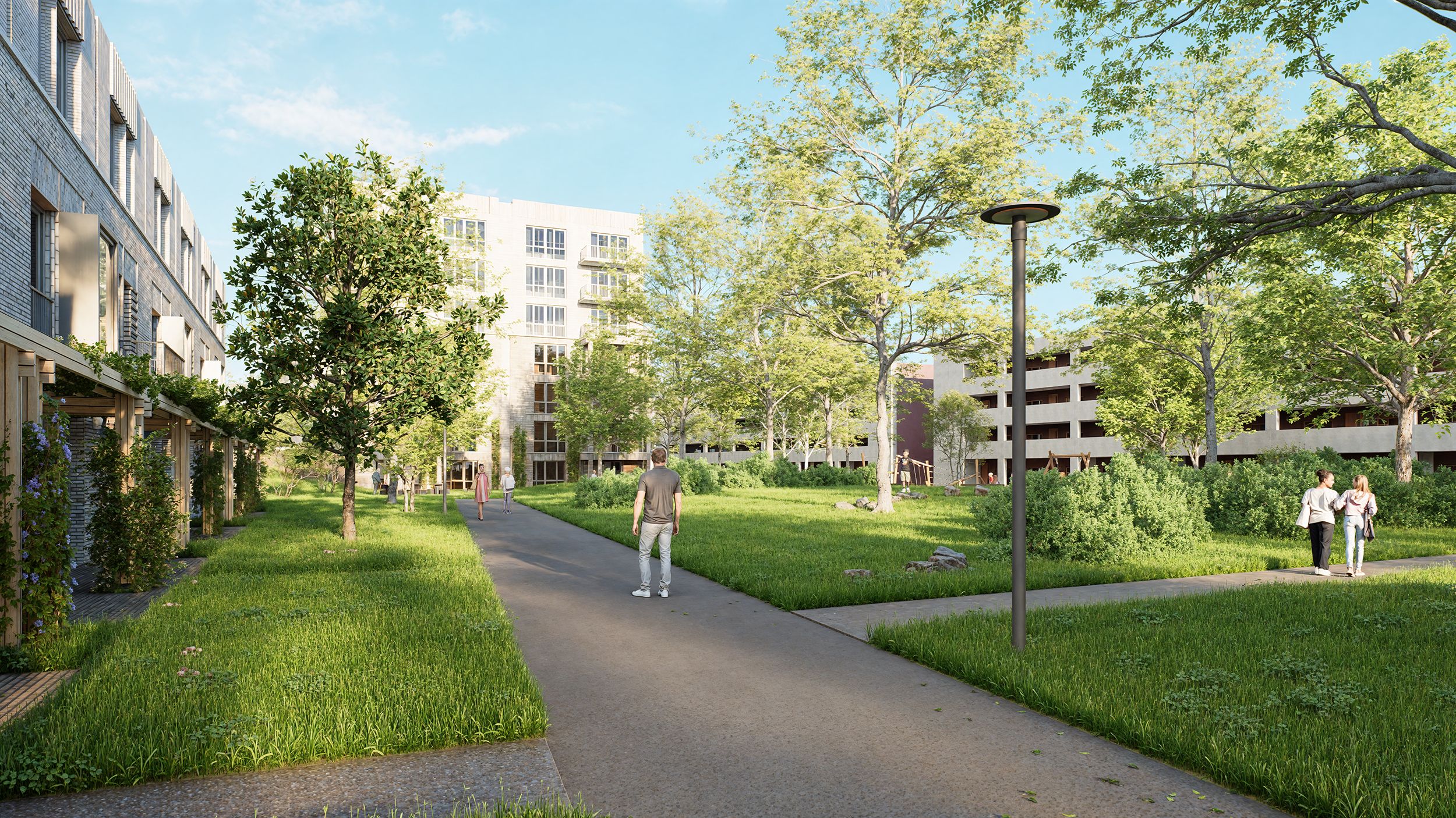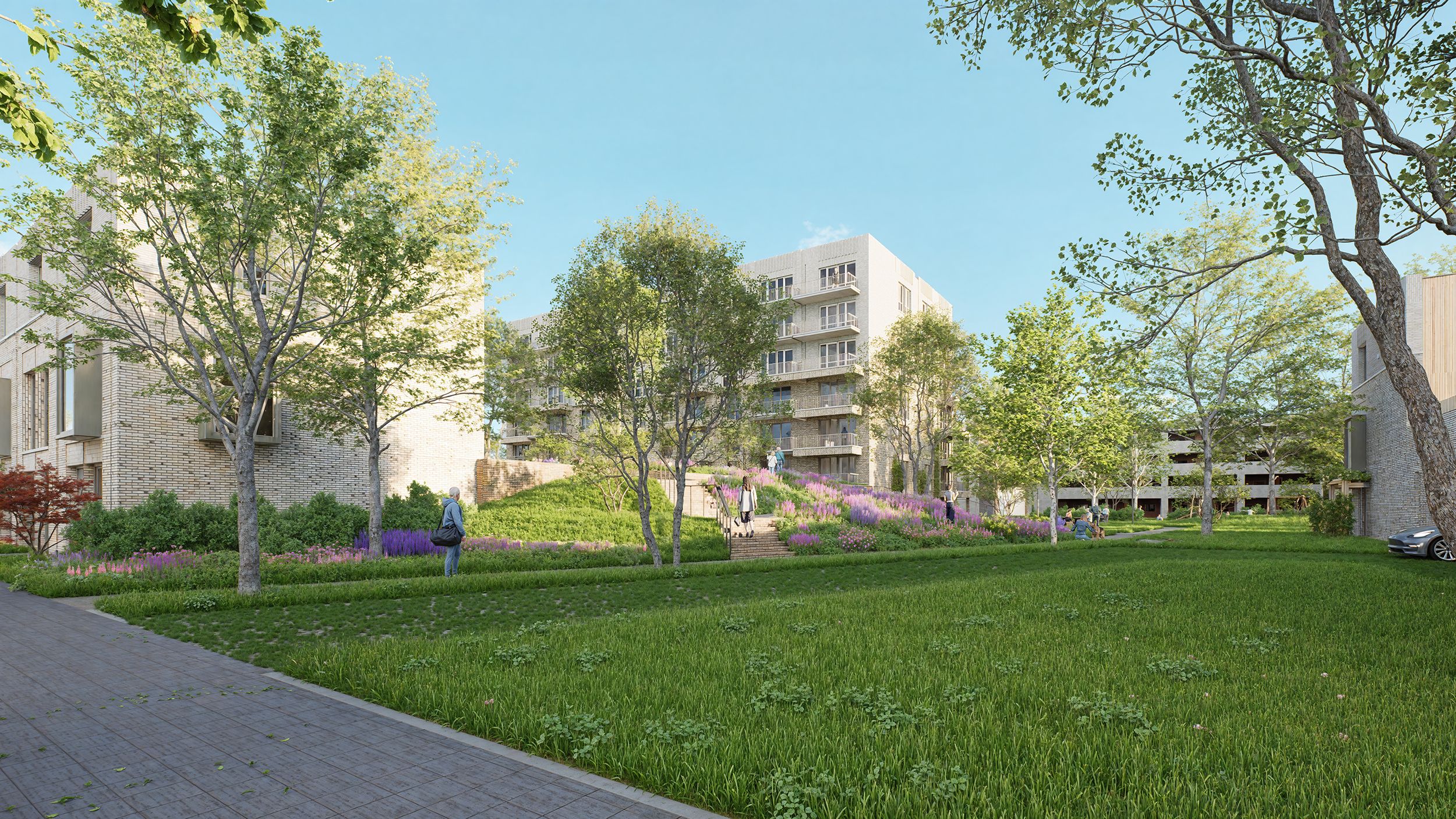 Wijpark is meer dan een woonwijk – het is een groene leefomgeving waar mens en natuur in balans zijn. De wijk wordt ontworpen met ruime parkstroken, speelplekken, ontmoetingspleinen en autoluwe zones. De auto verdwijnt uit het straatbeeld dankzij een parkeergarage, waardoor er ruimte ontstaat voor bomen, bloemen en buurtcontact.